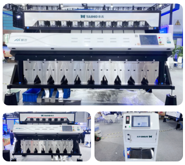 01明星产品 闪耀现场尊龙凯时智能携其最新研发的AI智选天眼Pro大米色选机、AI智选天眼Pro红外大米色选机、大米品质分析仪亮相展会,以其卓越的稳定性和分选效果赢得了广泛关注。